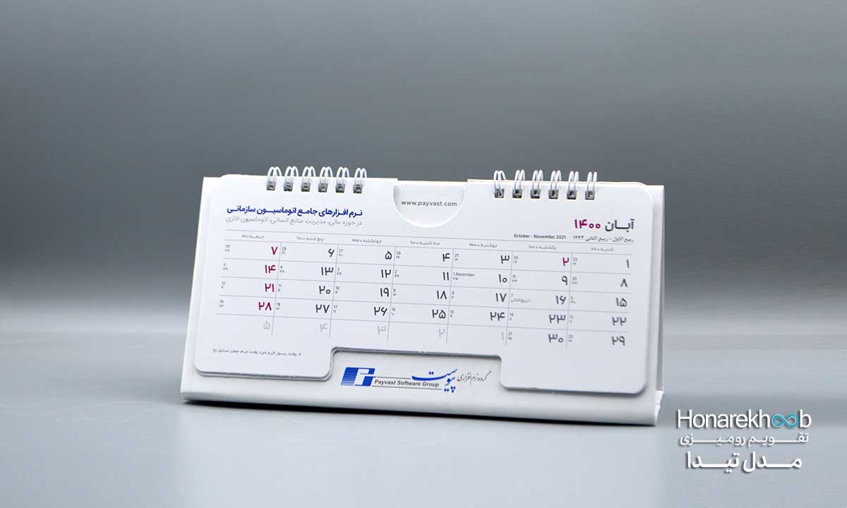 - چاپ : برای چاپ تقویم رومیزی تیدا از چاپ افست استفاده شده
