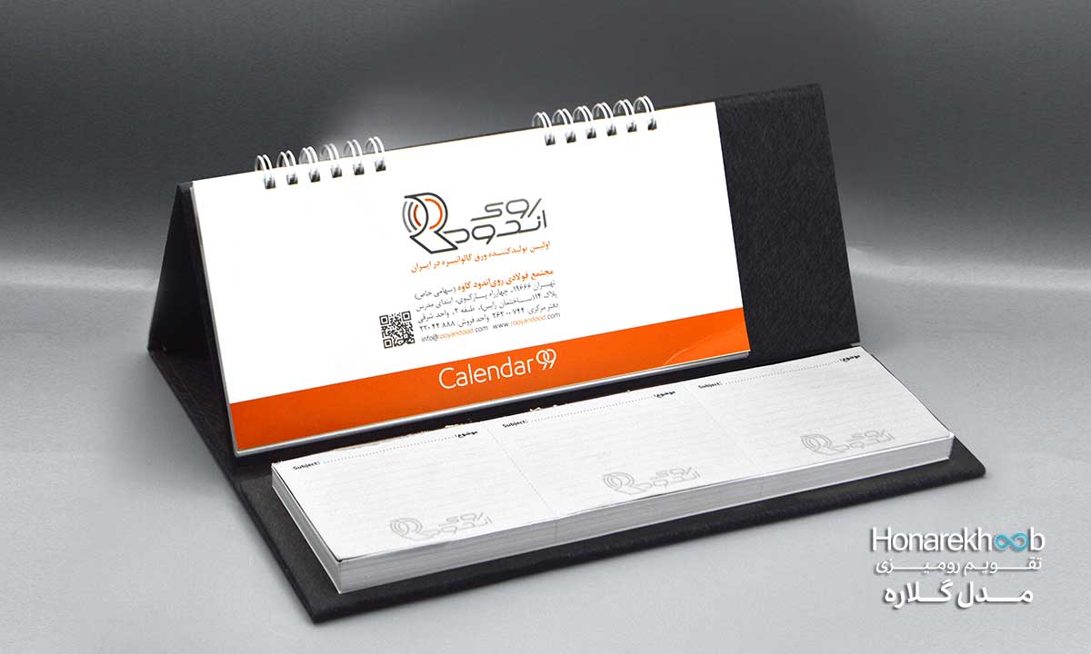 - خدمات جانبی : امکان چاپ طرح یا لوگو به صورت طلا کوب بر روی جلد قسمت راست تقویم و همچنین امکان چاپ عکس و مطالب دلخواه خود را در تمامی 13 برگ به همراه بارکد خوان