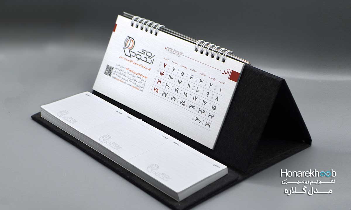 - ابعاد : ابعاد قسمت تقویم 21*9.5 سانتی متر و قسمت یادداشت 24*7 سانتی متر